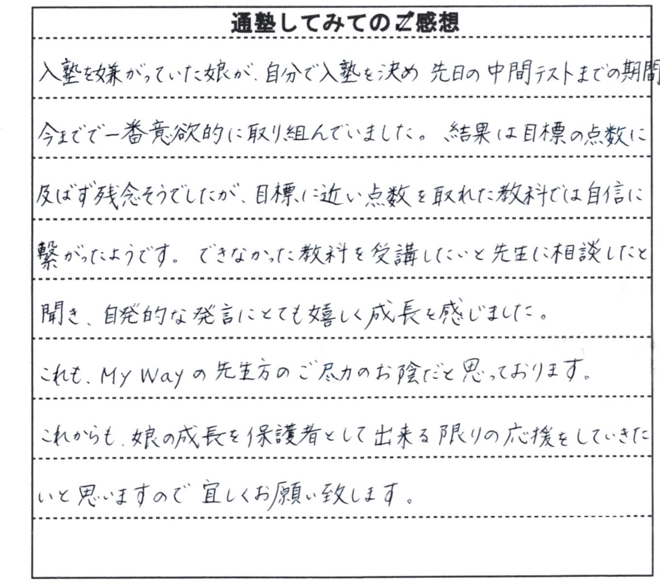 Home » ブログ » 新個別指導塾マイウェイに通われた方のお声を紹介します🎵